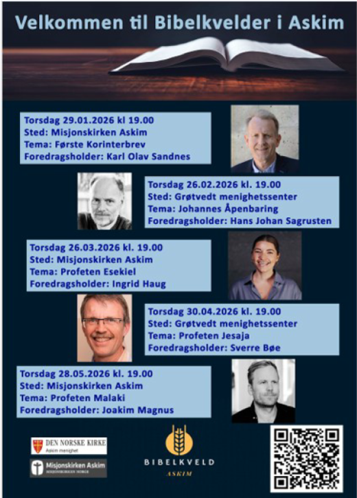 Vi samles til høytlesning fra Bibelen. Vi synger og ber sammen. Velkommen til å lese og høre fra Bibelen.